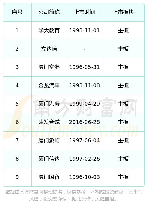 從市值來看,廈門湖里區(qū)主板上市公司市值排名情況:廈門象嶼241.73億、廈門國貿132.75億、立達信121.49億、金龍汽車114.51億、廈門港務93.84億、廈門空港71.17億、學大教育45.13億、廈門信達42.85億、建發(fā)合誠29.35億。