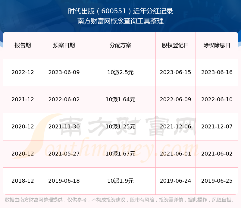 時(shí)代出版最新一次公布的分紅方案:10派2.5元。