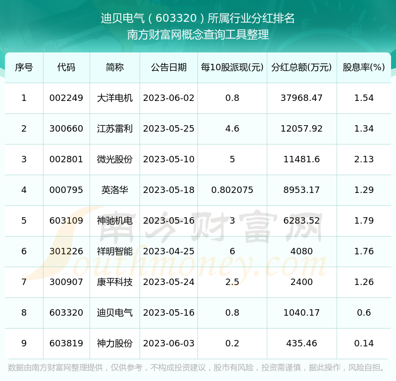 二、迪貝電氣603320行業(yè)分紅排名
