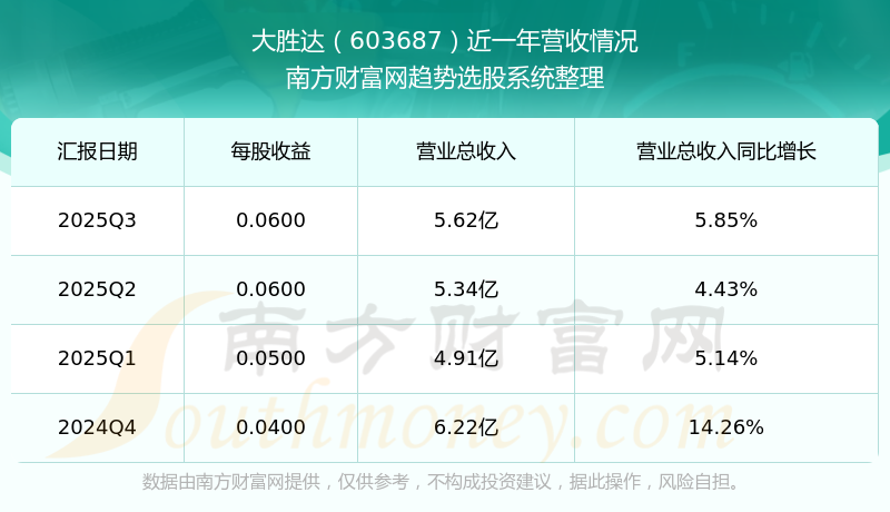 一、大勝達(dá)(603687)股票營(yíng)收情況