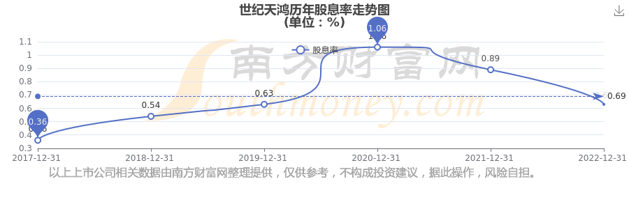 近年世紀天鴻年度股息率走勢如下圖: