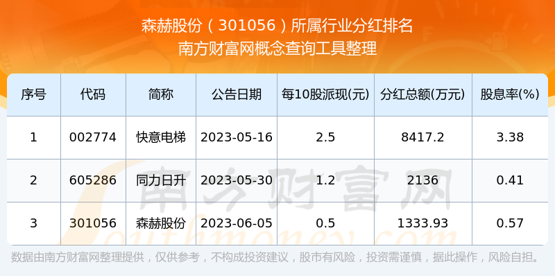 二、森赫股份301056行業(yè)分紅排名