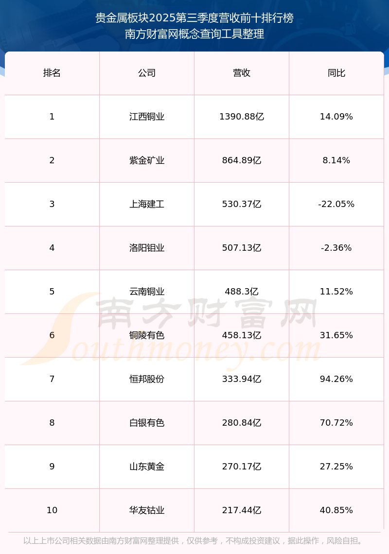 按照南方財(cái)富網(wǎng)概念查詢(xún)工具統(tǒng)計(jì),該股所屬板塊為貴金屬板塊,該板塊共有67只股票,西部黃金2025第三季度營(yíng)收在該板塊中排名為第28名,該板塊2025第三季度營(yíng)收排名前十的股票如下表: