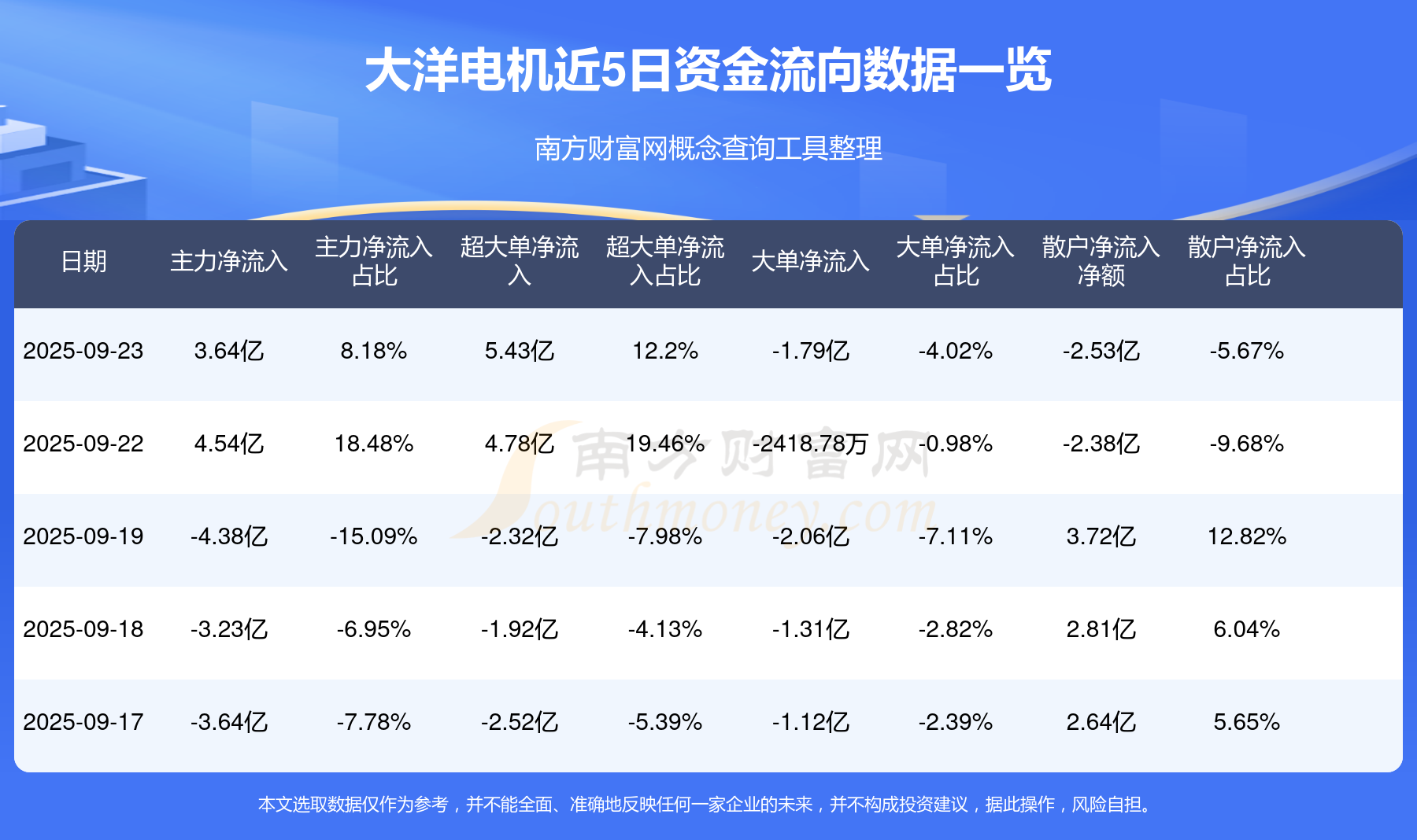 資金流向數(shù)據(jù)方面,9月23日主力資金凈流流入3.64億元,超大單資金凈流入5.43億元,大單資金凈流出1.79億元,散戶資金凈流出2.53億元。