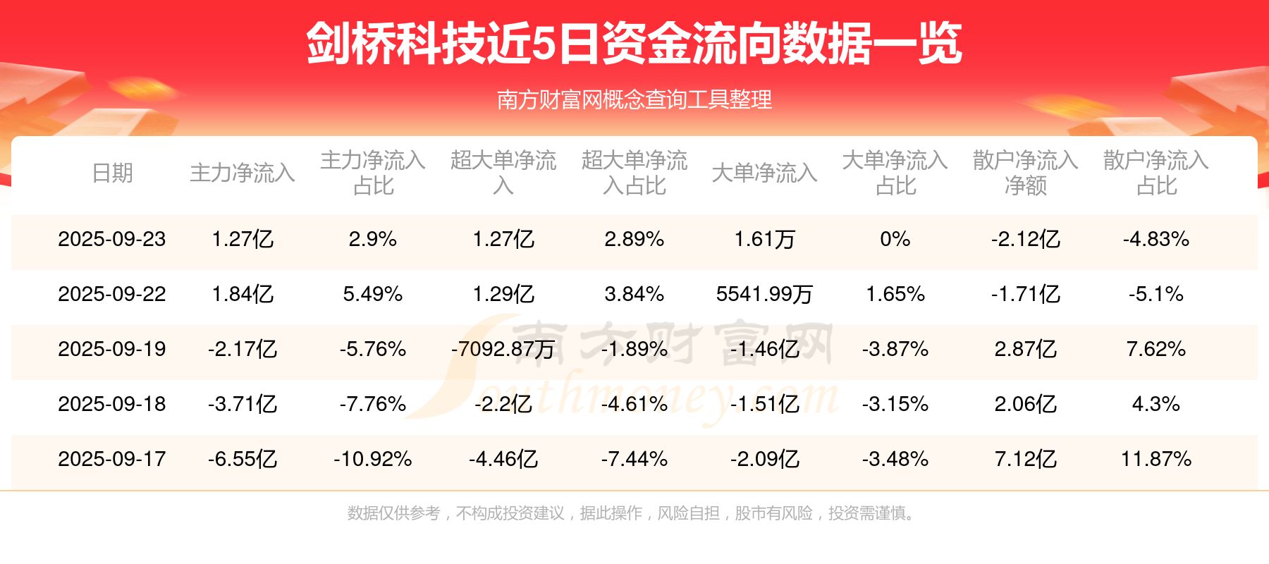 9月23日消息,劍橋科技資金凈流出1.27億元,超大單資金凈流入1.27億元,最新報(bào)114.950元,換手率14.14%,成交總金額43.86億元。
