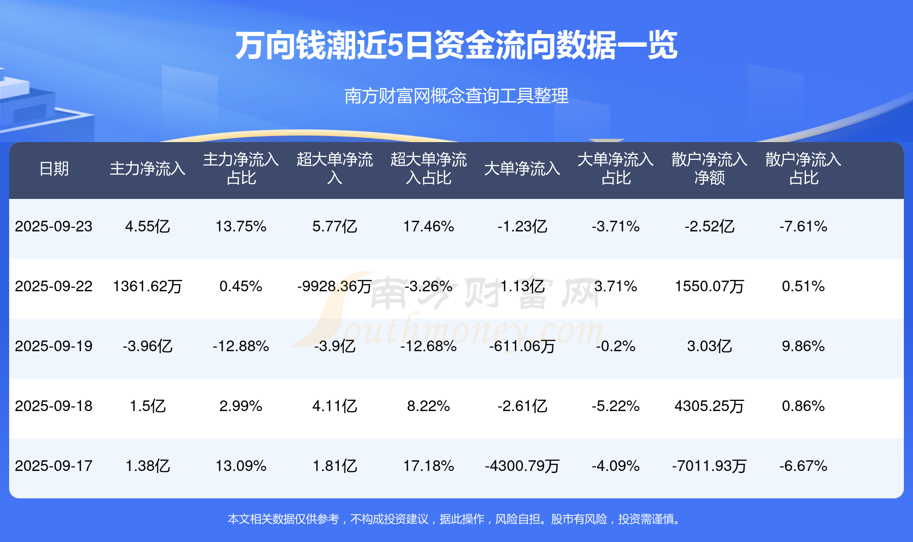 近5日資金流向一覽見下表: