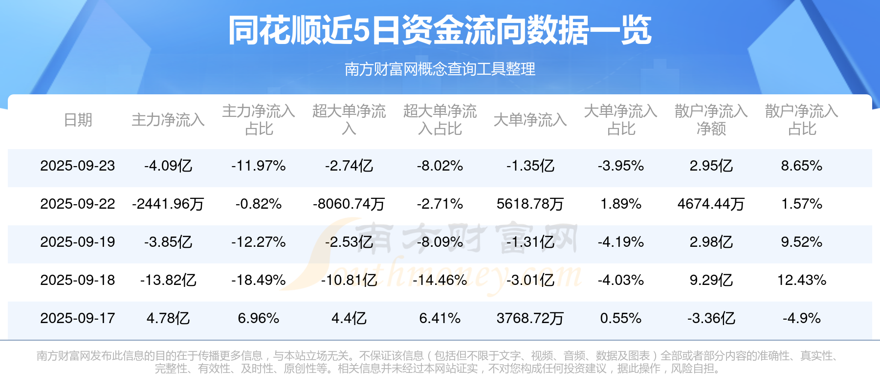 9月23日消息,同花順主力資金凈流出4.09億元,超大單資金凈流出2.74億元,散戶資金凈流入2.95億元。