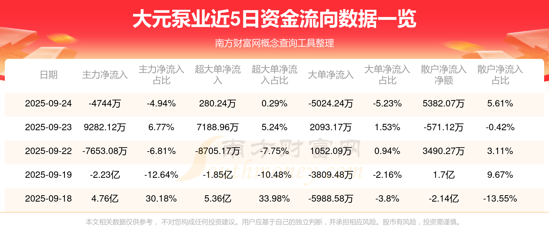 近5日資金流向一覽見下表: