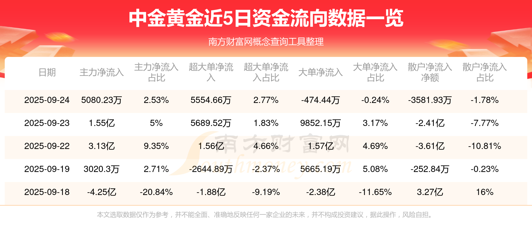 近5日資金流向一覽見下表: