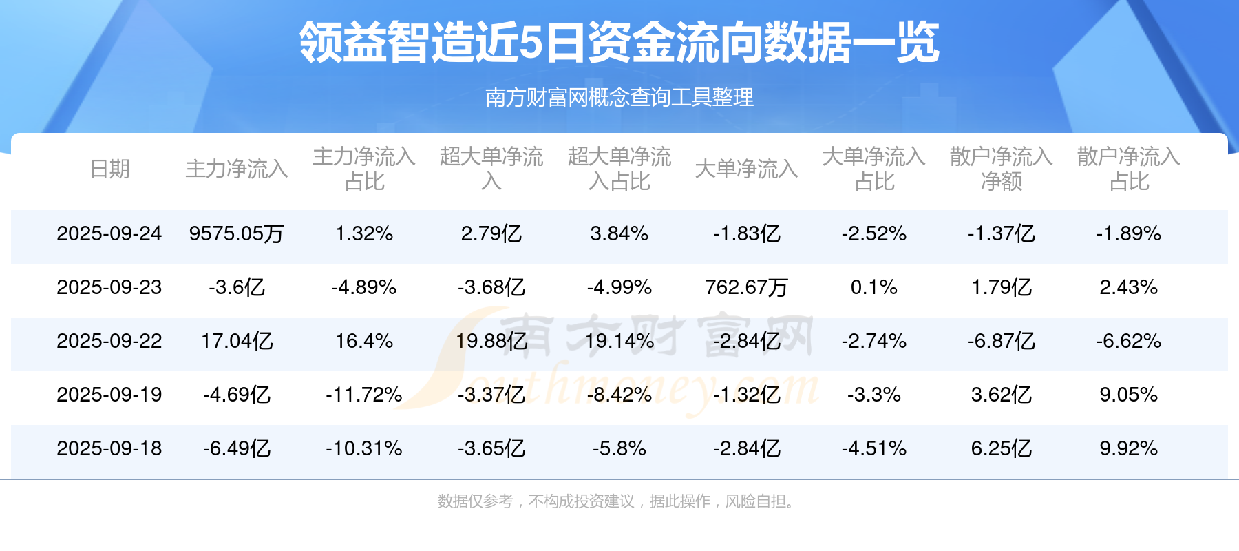 近5日資金流向一覽見下表: