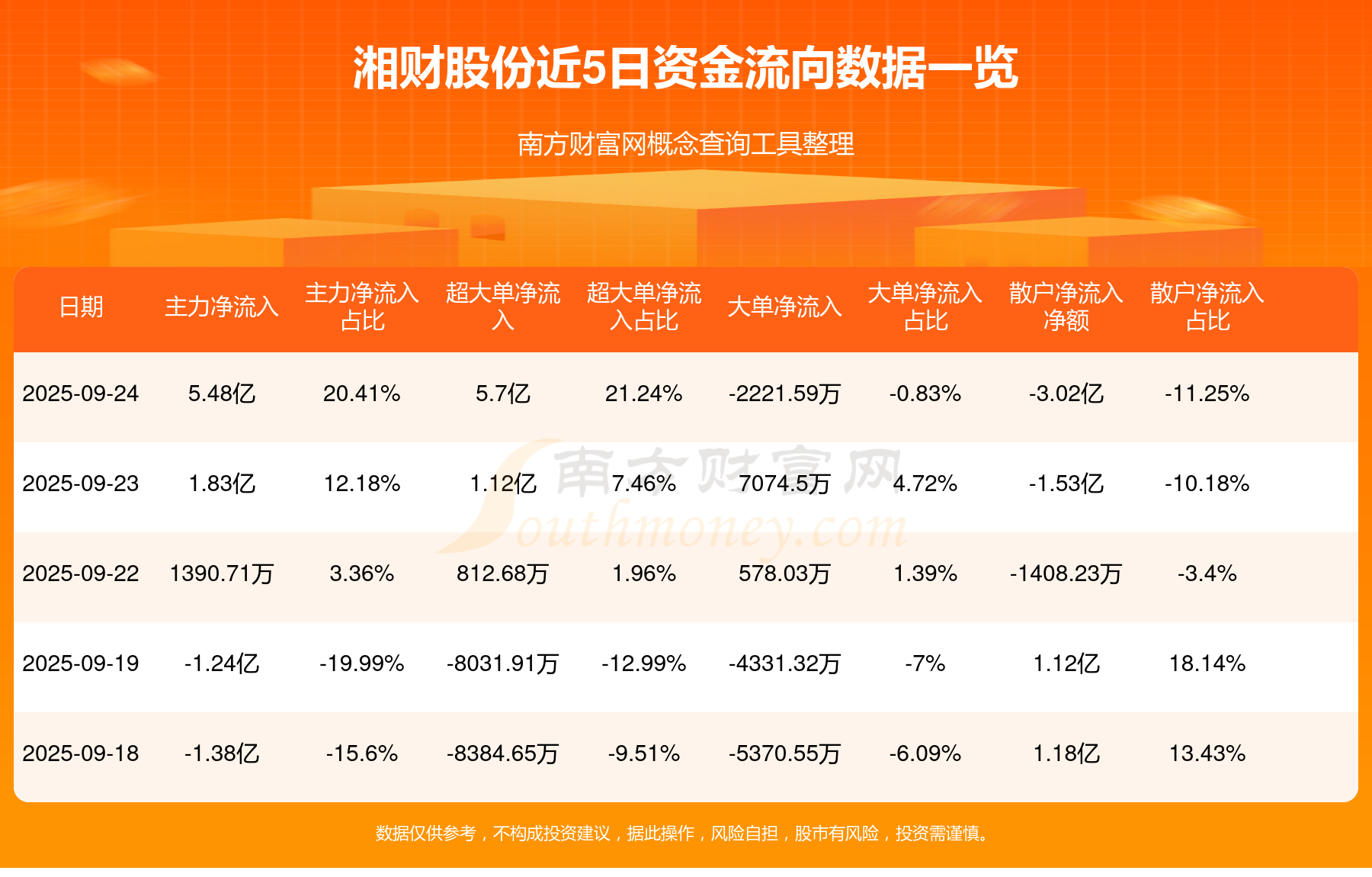 近5日資金流向一覽見下表: