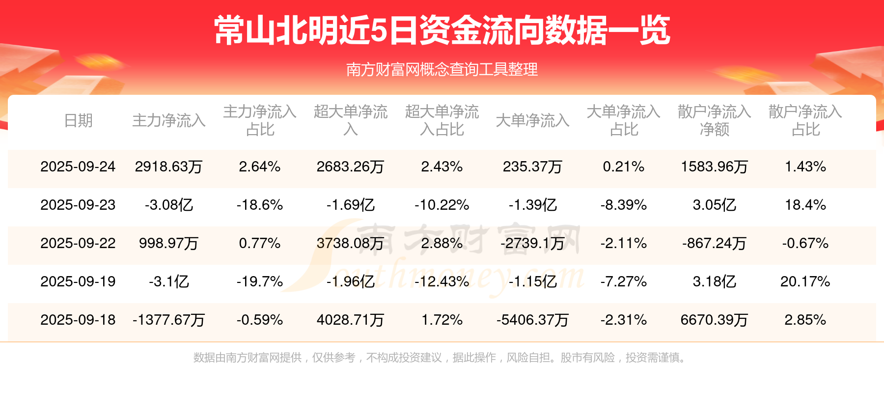 9月24日消息,常山北明資金凈流入2918.63萬(wàn)元,超大單資金凈流入2683.26萬(wàn)元,換手率3%,成交金額11.06億元。
