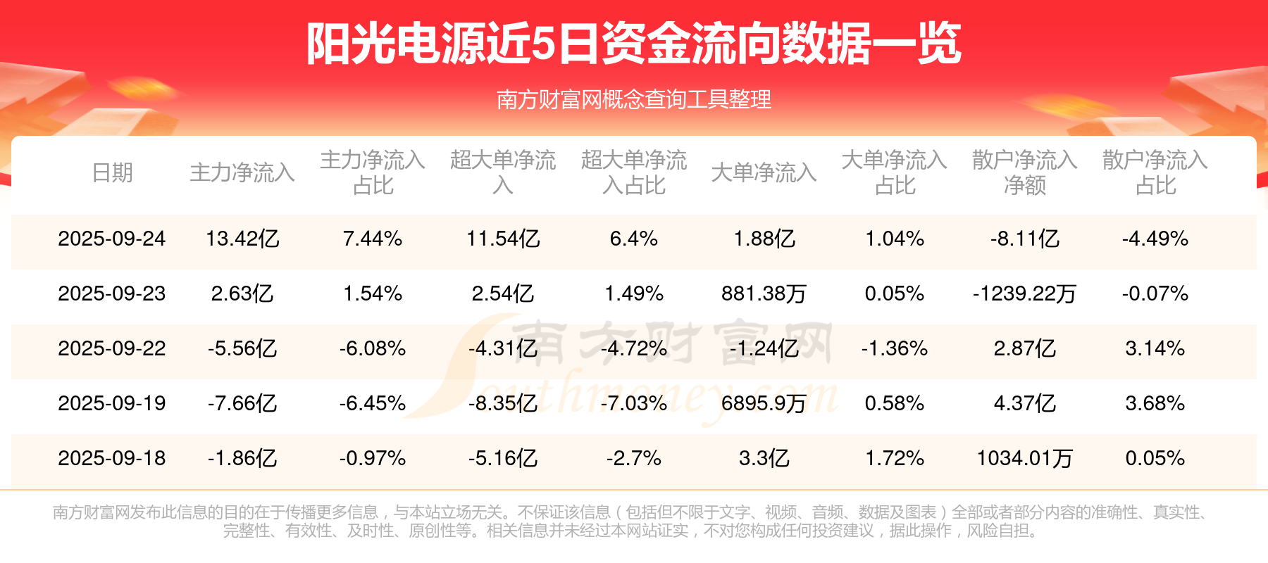9月24日該股主力凈流入13.42億元,超大單凈流入11.54億元,大單凈流入1.88億元,中單凈流出5.31億元,散戶凈流出8.11億元。