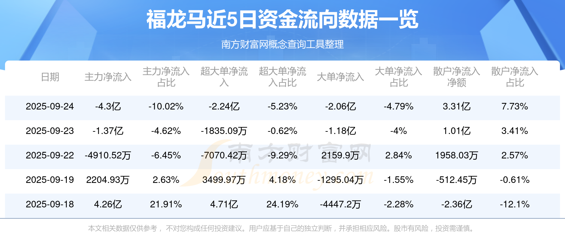 近5日資金流向一覽見下表: