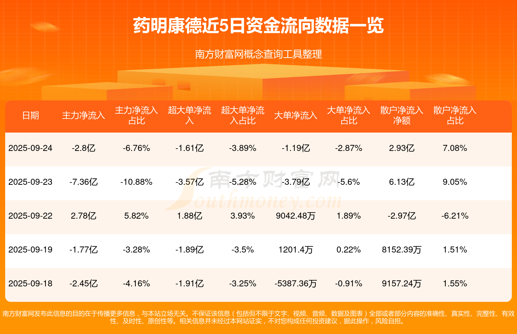 9月24日消息,藥明康德主力資金凈流出2.8億元,超大單資金凈流出1.61億元,散戶資金凈流入2.93億元。