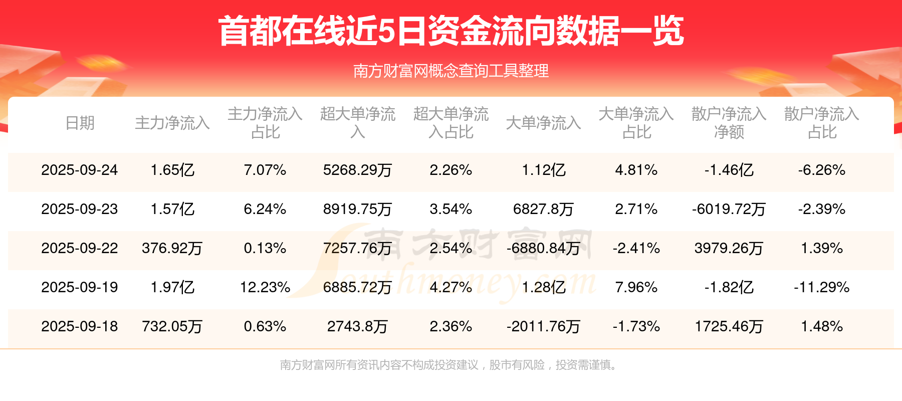 9月24日消息,首都在線主力凈流入1.65億元,超大單凈流入5268.29萬元,散戶凈流出1.46億元。