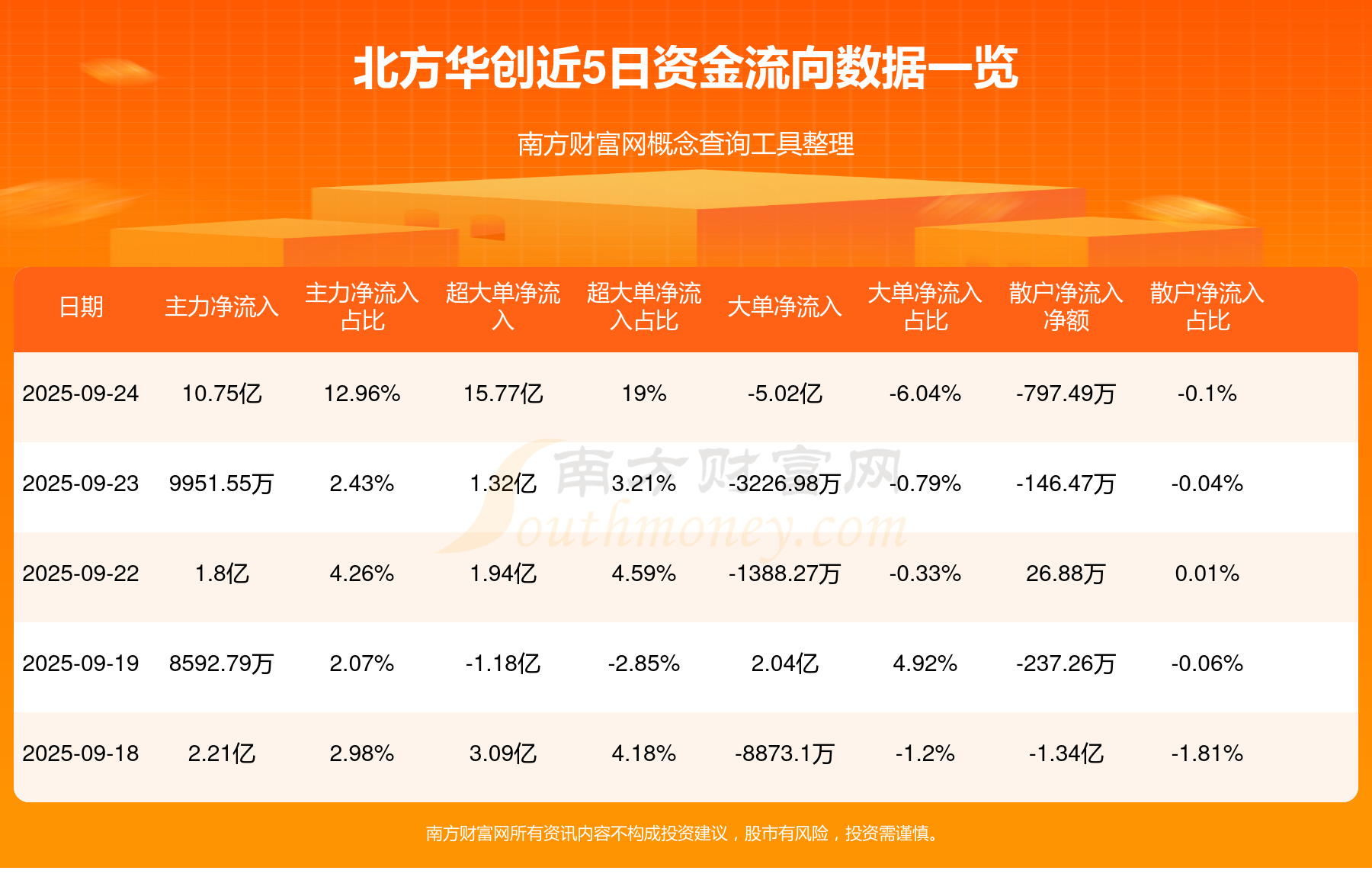 9月24日消息,北方華創(chuàng)主力凈流入10.75億元,超大單凈流入15.77億元,散戶(hù)凈流出797.49萬(wàn)元。