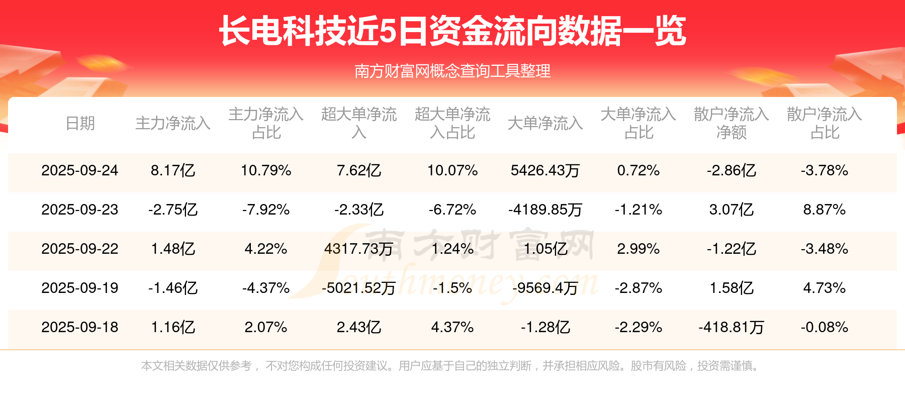 9月24日消息,長電科技9月24日主力凈流入8.17億元,超大單凈流入7.62億元,大單凈流入5426.43萬元,散戶凈流出2.86億元。