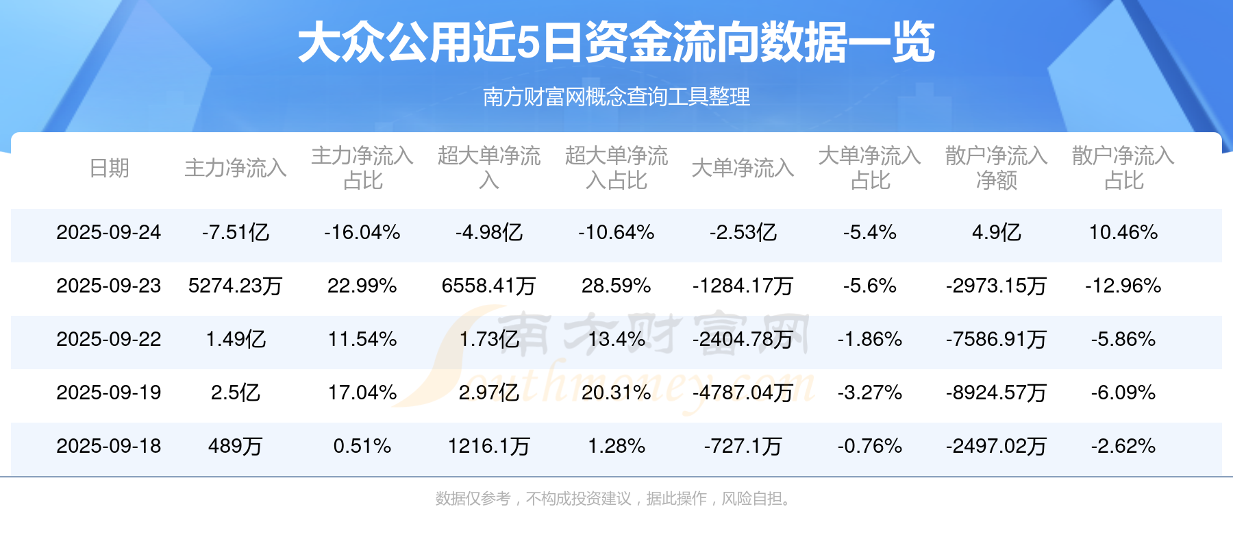 9月24日消息,大眾公用主力資金凈流出7.51億元,超大單資金凈流出4.98億元,散戶資金凈流入4.9億元。