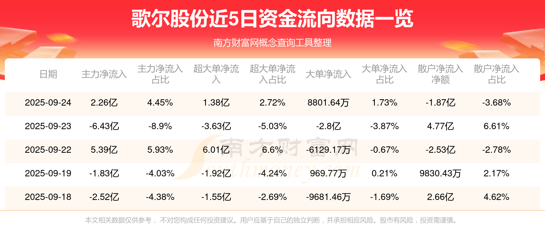 9月24日該股主力凈流入2.26億元,超大單凈流入1.38億元,大單凈流入8801.64萬元,中單凈流出3949.44萬元,散戶凈流出1.87億元。
