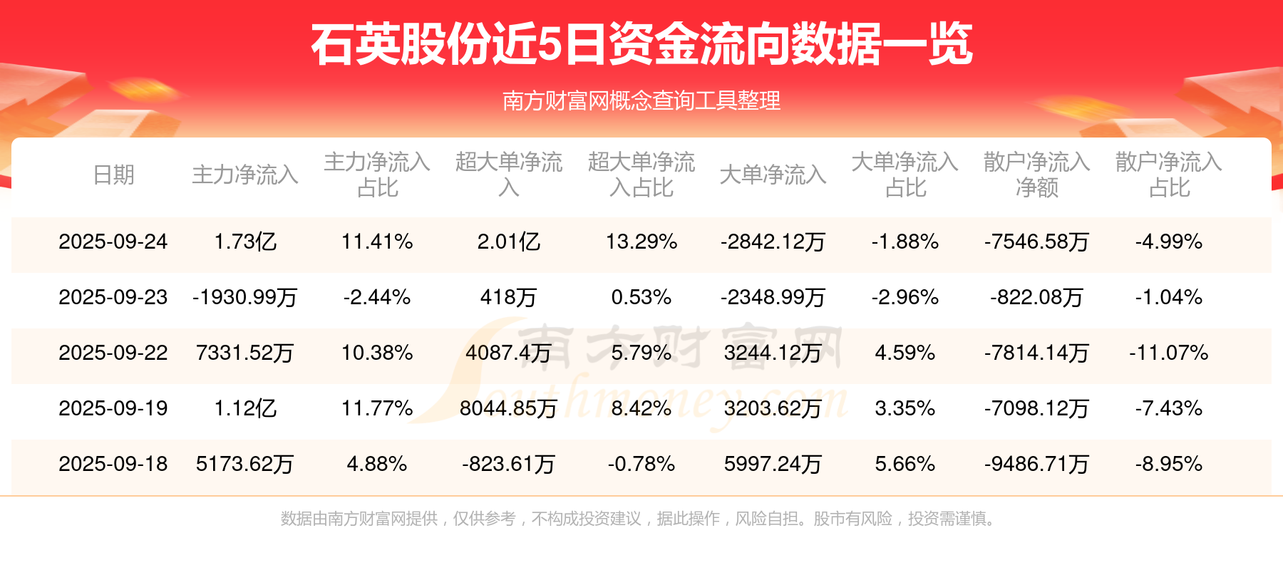 9月24日開盤最新消息,石英股份今年來上漲32.54%,截至下午三點收盤,該股漲6.32%報42.590元 。