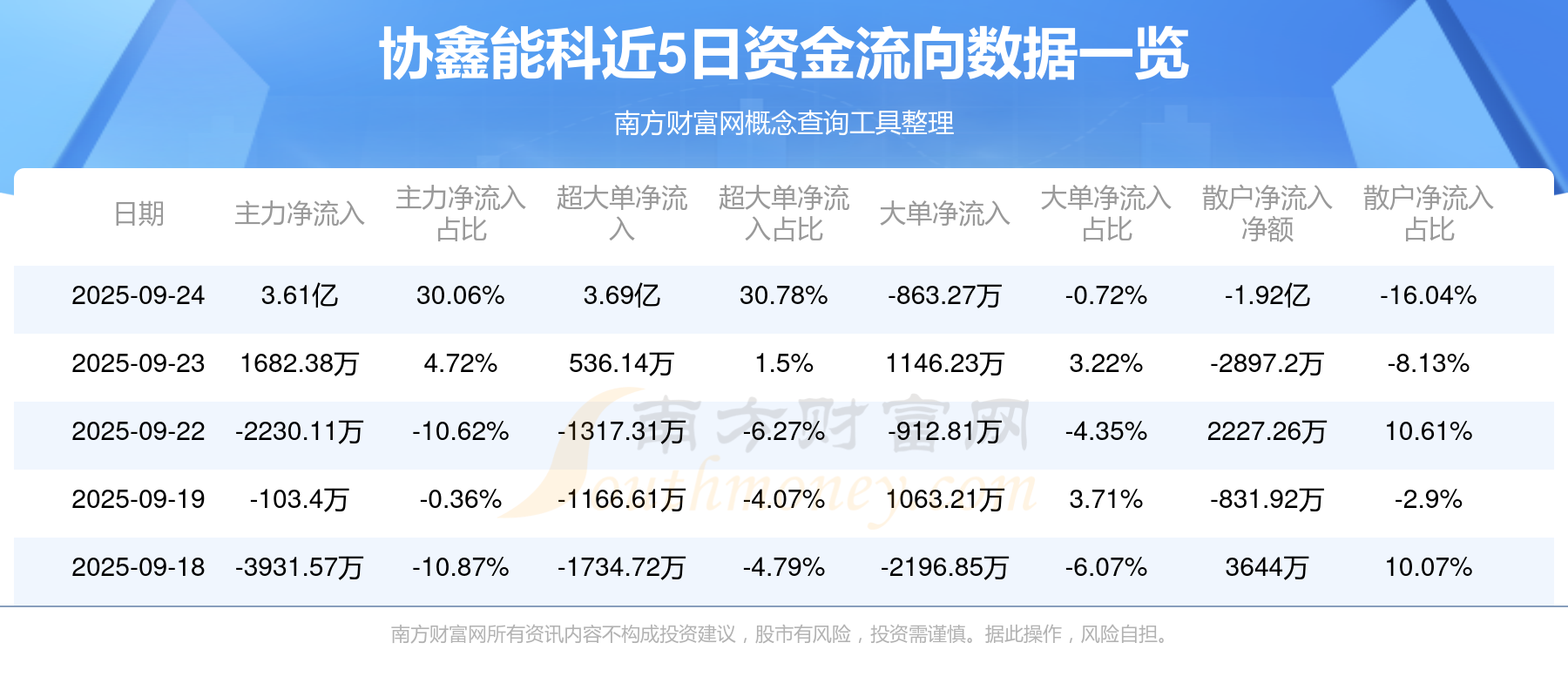 9月24日消息,協(xié)鑫能科主力資金凈流入3.61億元,超大單資金凈流入3.69億元,散戶資金凈流出1.92億元。