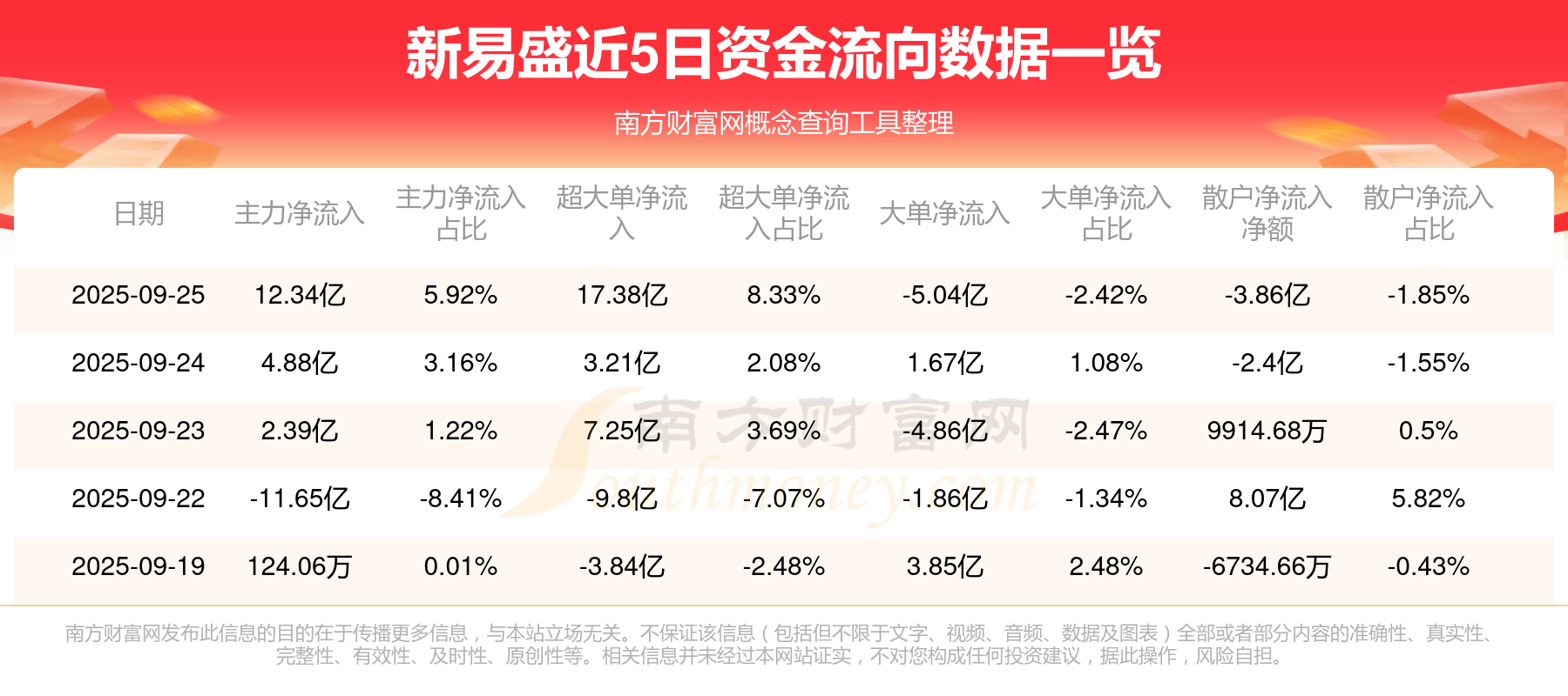 9月25日消息,新易盛9月25日主力資金凈流入12.34億元,超大單資金凈流入17.38億元,大單資金凈流出5.04億元,散戶資金凈流出3.86億元。