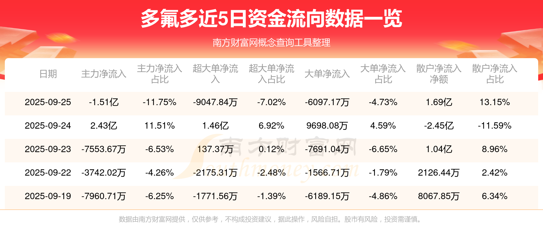 9月25日消息,多氟多9月25日主力凈流出1.51億元,超大單凈流出9047.84萬元,大單凈流出6097.17萬元,散戶凈流入1.69億元。