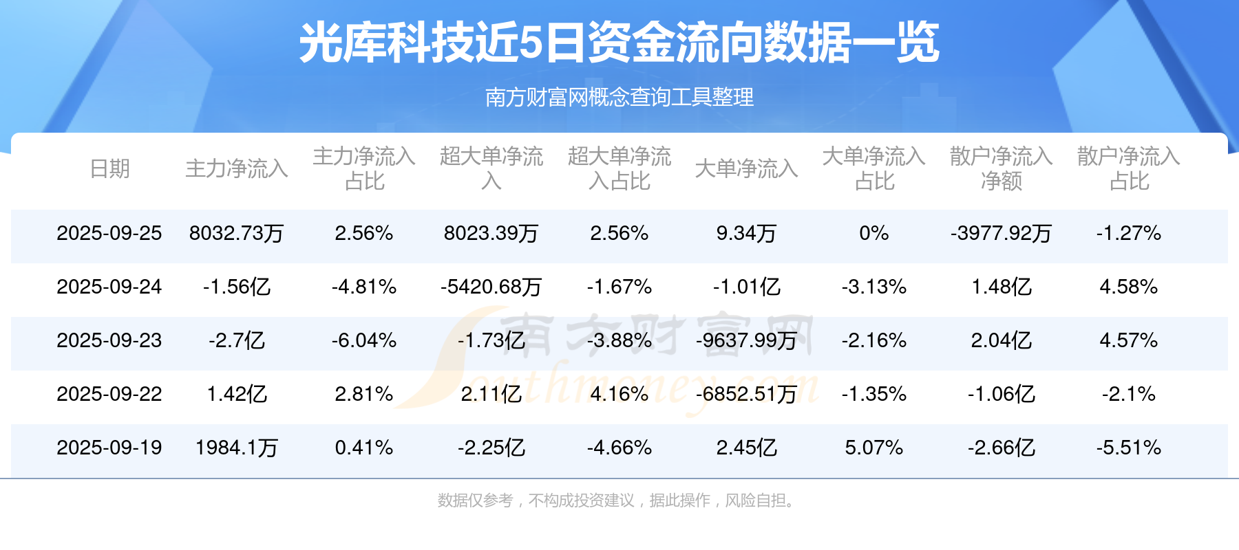 9月25日消息,光庫(kù)科技9月25日主力凈流入8032.73萬(wàn)元,超大單凈流入8023.39萬(wàn)元,大單凈流入9.34萬(wàn)元,散戶凈流出3977.92萬(wàn)元。