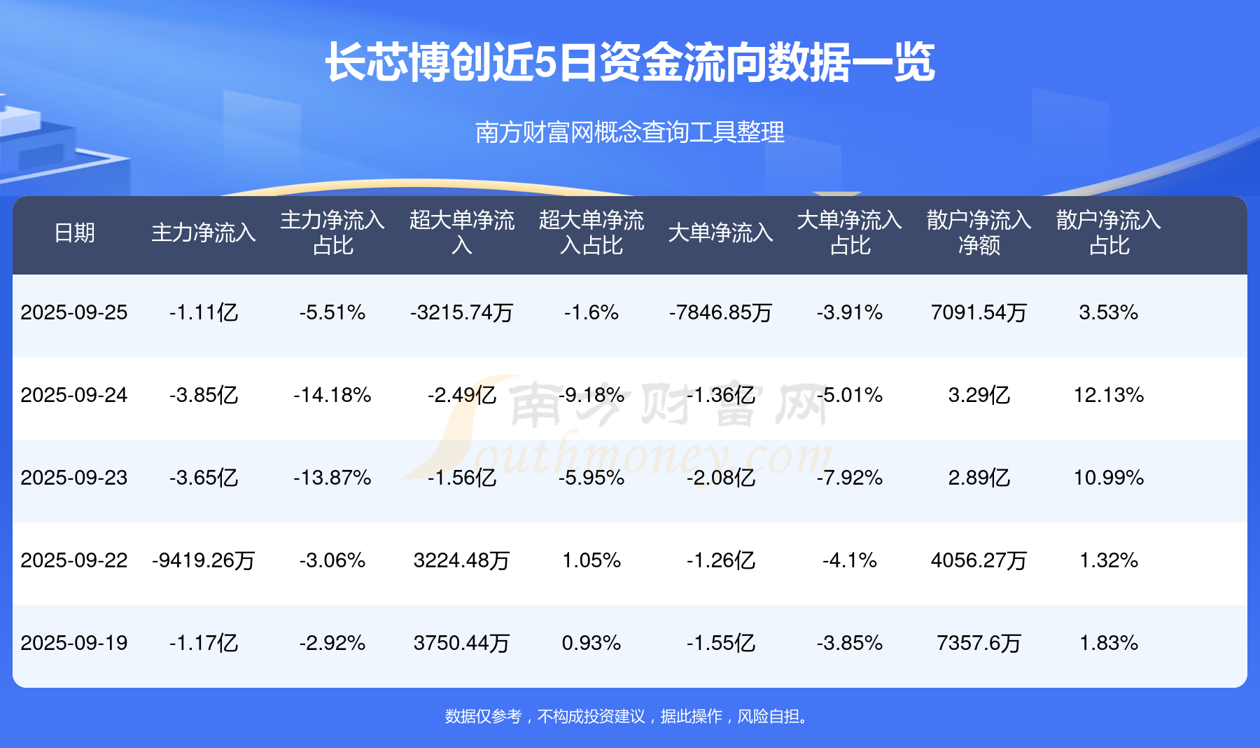 9月25日消息,長芯博創(chuàng)主力資金凈流出1.11億元,超大單資金凈流出3215.74萬元,散戶資金凈流入7091.54萬元。