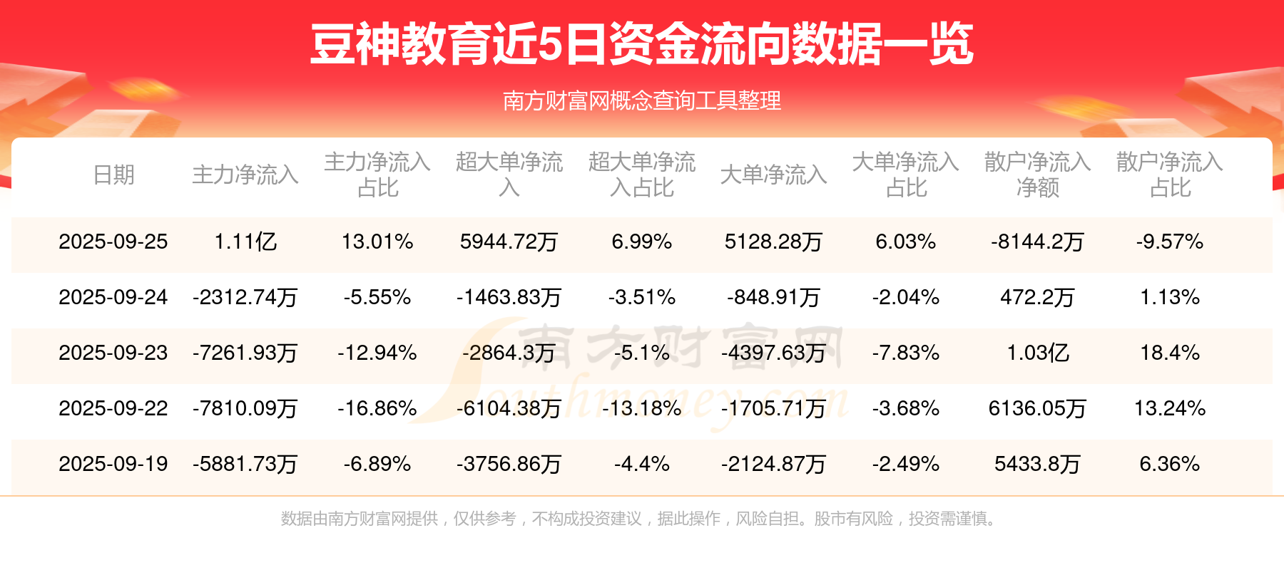 近5日資金流向一覽見下表: