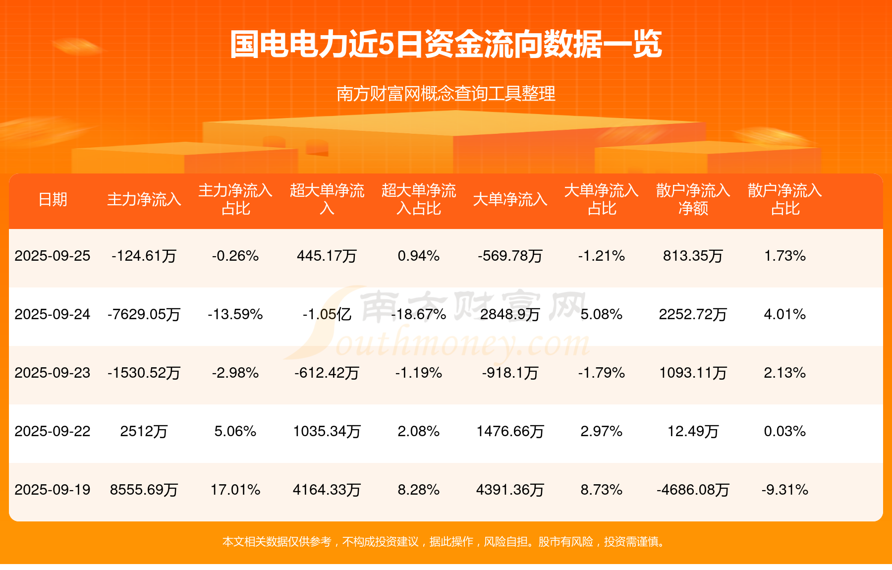 9月25日消息,國(guó)電電力9月25日主力資金凈流出124.61萬(wàn)元,超大單資金凈流入445.17萬(wàn)元,大單資金凈流出569.78萬(wàn)元,散戶(hù)資金凈流入813.35萬(wàn)元。