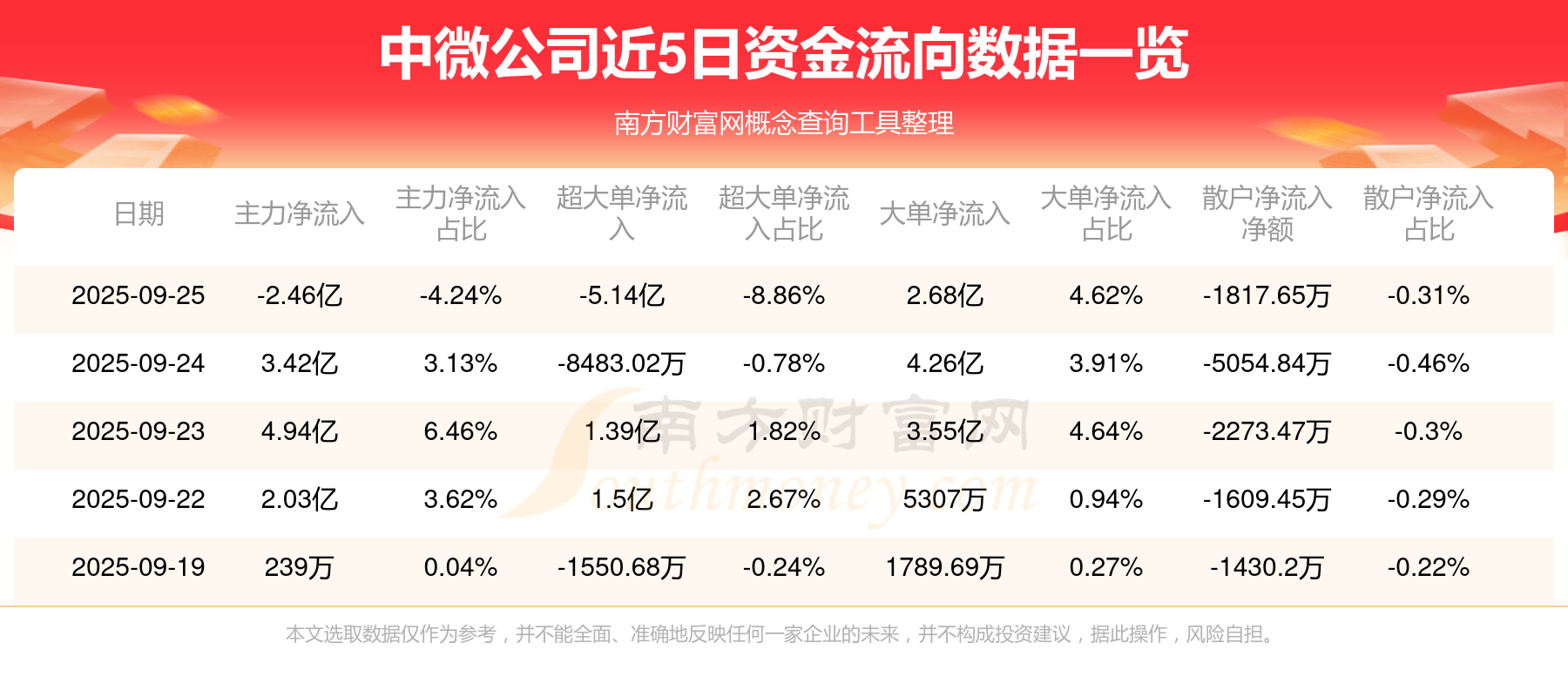 近5日資金流向一覽見下表: