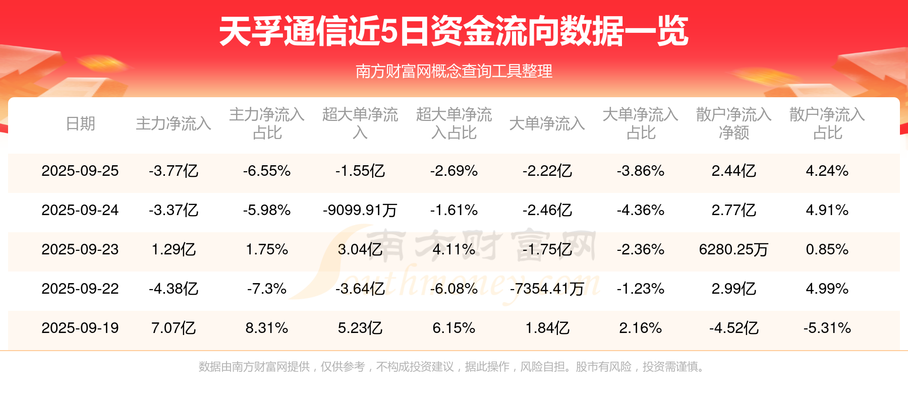 9月25日消息,天孚通信主力資金凈流出3.77億元,超大單資金凈流出1.55億元,散戶資金凈流入2.44億元。