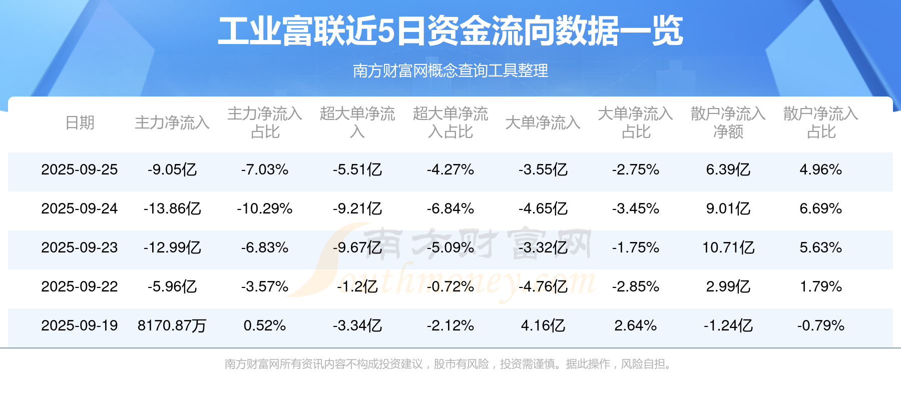 9月25日消息,工業(yè)富聯(lián)9月25日主力資金凈流出9.05億元,超大單資金凈流出5.51億元,大單資金凈流出3.55億元,散戶資金凈流入6.39億元。