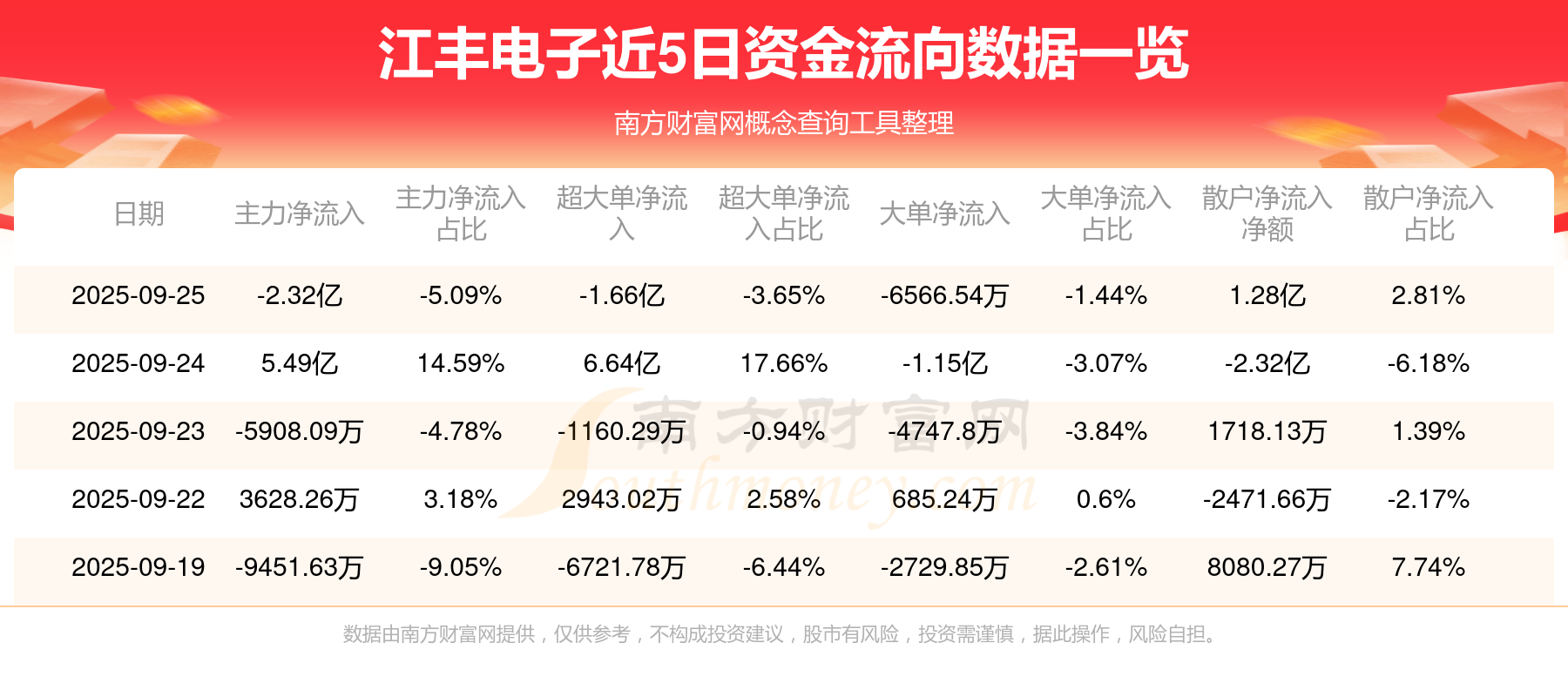 近5日資金流向一覽見下表: