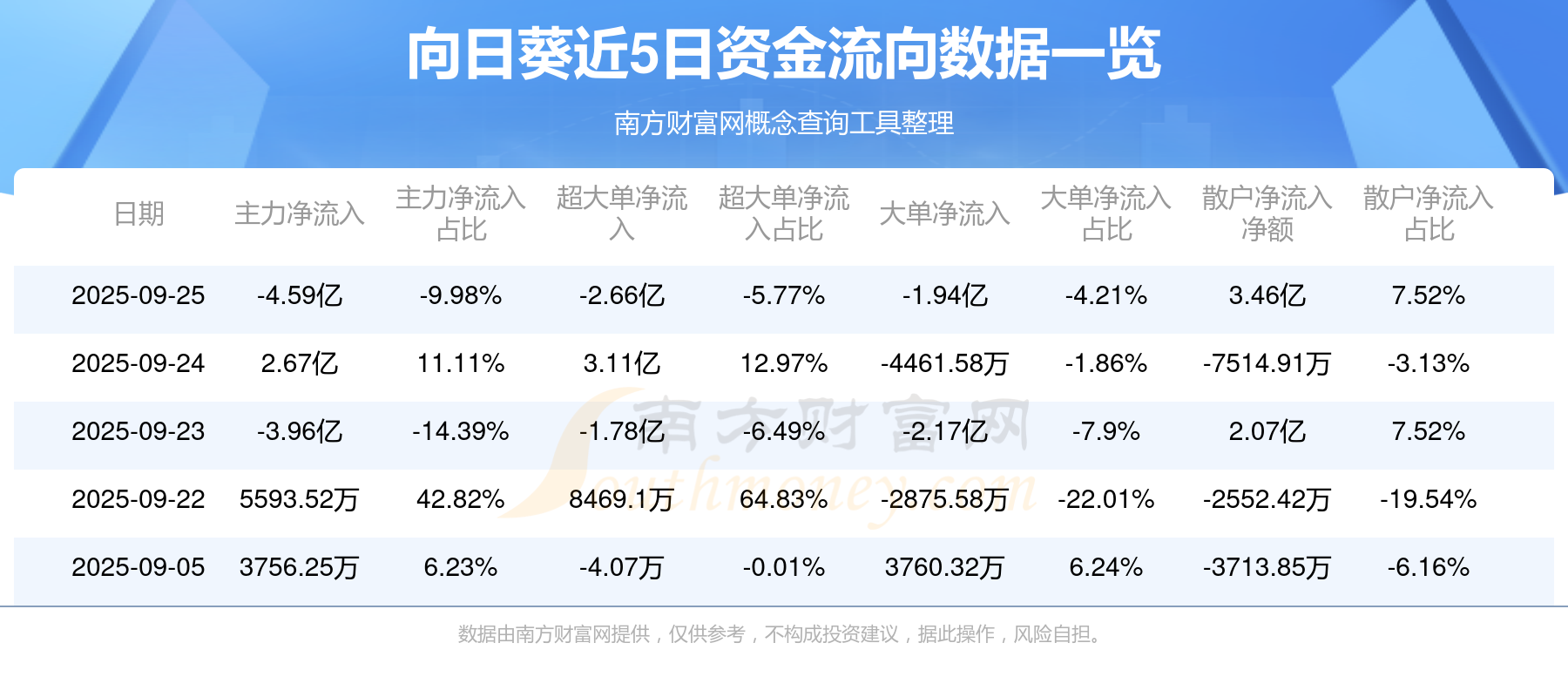 近5日資金流向一覽見下表: