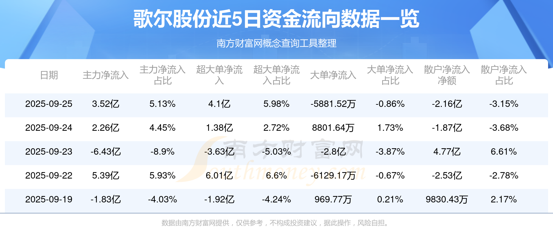 近5日資金流向一覽見下表: