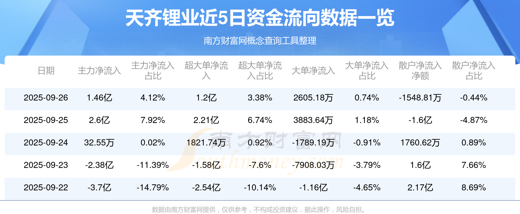 9月26日消息,天齊鋰業(yè)資金凈流入1.46億元,超大單資金凈流入1.2億元,換手率5.3%,成交金額35.35億元。