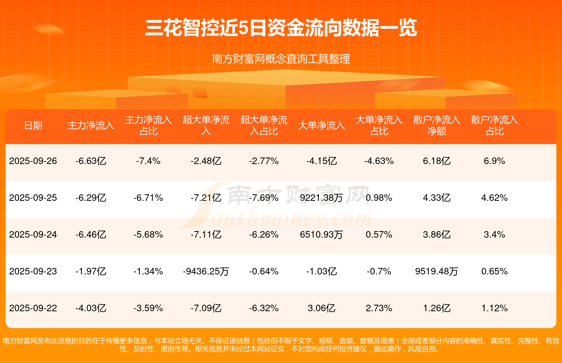 近5日資金流向一覽見下表: