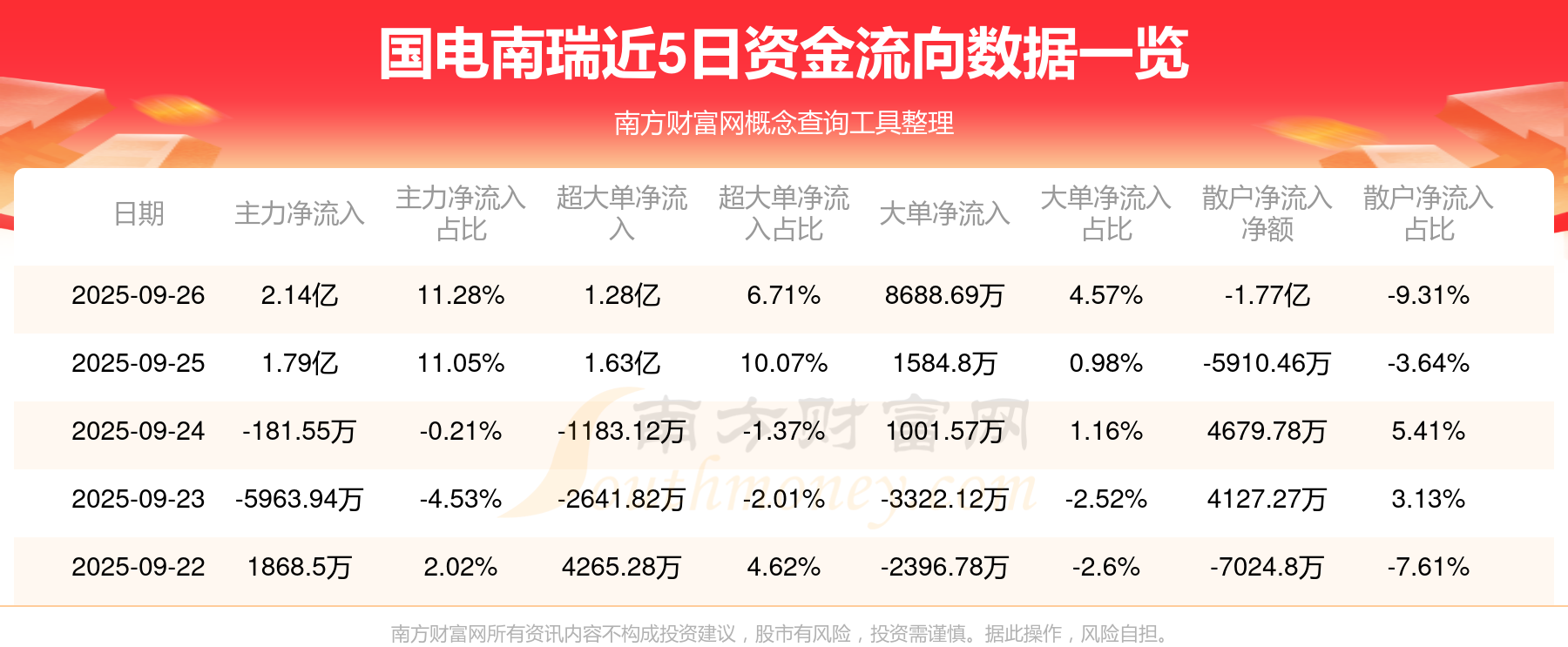 9月26日該股主力資金凈流入2.14億元,超大單資金凈流入1.28億元,大單資金凈流入8688.69萬元,中單資金凈流出3755.04萬元,散戶資金凈流出1.77億元。