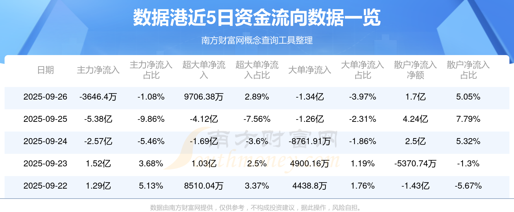 9月26日該股主力凈流出3646.4萬元,超大單凈流入9706.38萬元,大單凈流出1.34億元,中單凈流出1.33億元,散戶凈流入1.7億元。