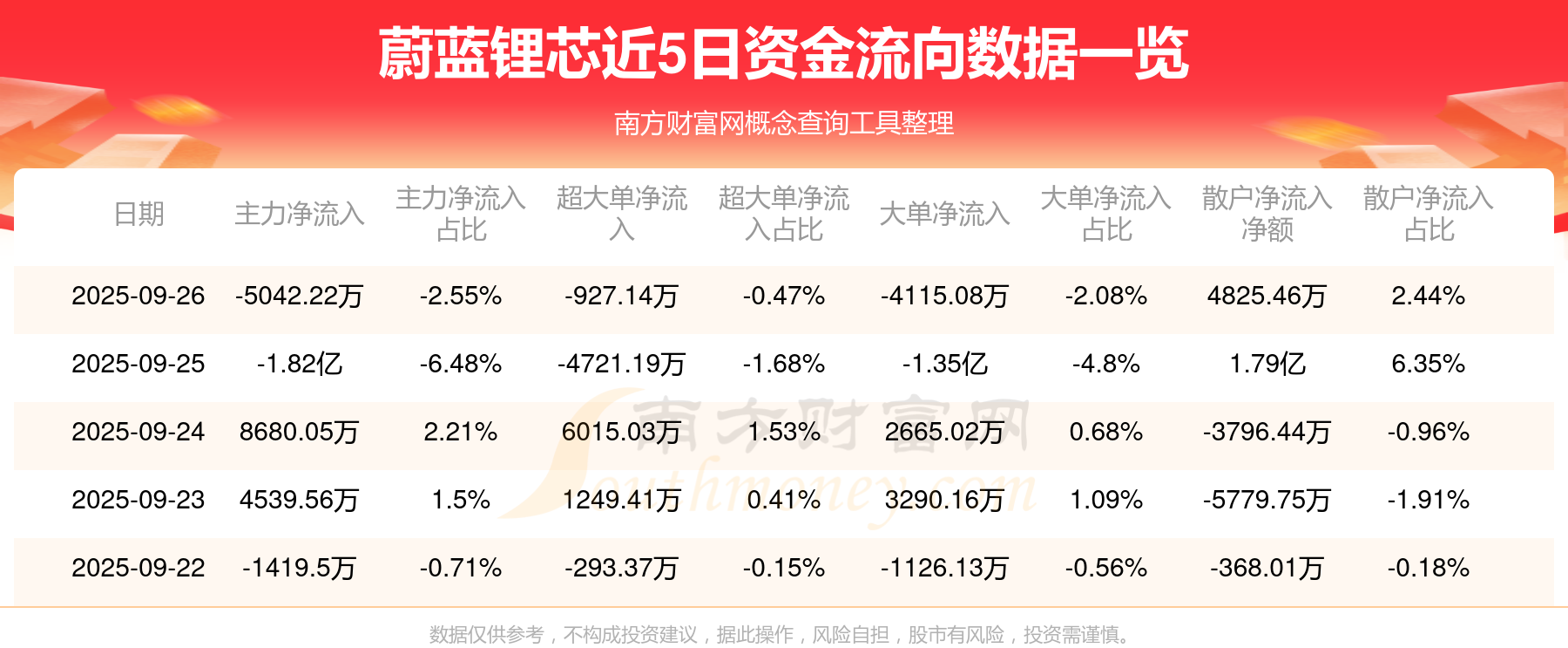 9月26日消息,蔚藍鋰芯資金凈流出5042.22萬元,超大單凈流出927.14萬元,換手率8.72%,成交金額19.79億元。