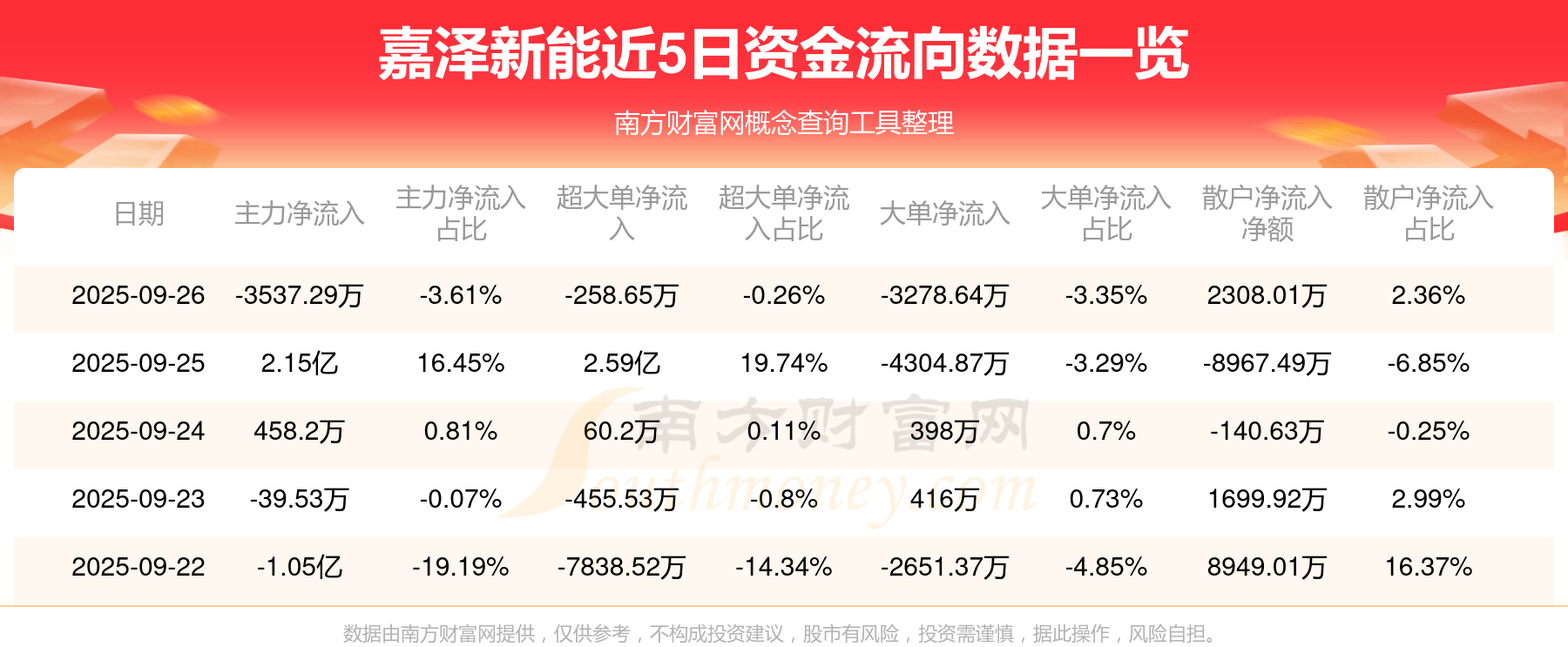 近5日資金流向一覽見下表:
