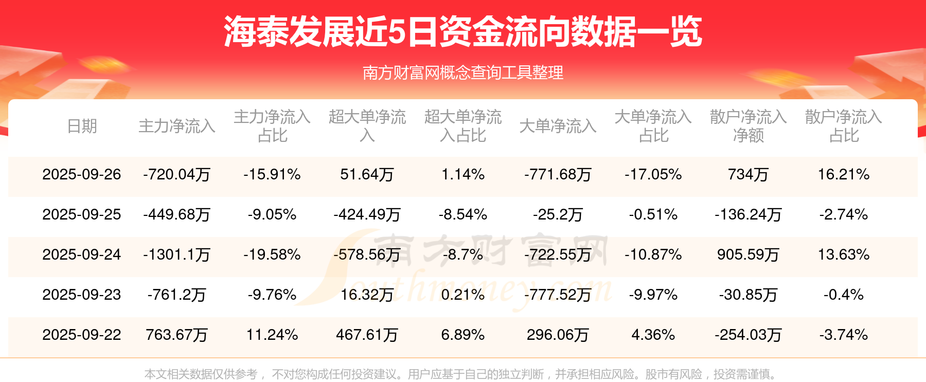 9月26日,海泰發(fā)展(600082)13時(shí)18分股價(jià)報(bào)3.980元,漲0.5%,市值為25.72億元,換手率1.74%,當(dāng)日成交額4429.75萬(wàn)元。