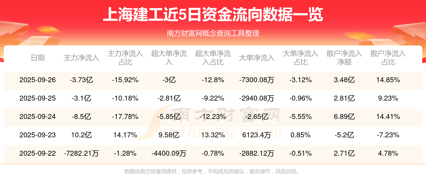 9月26日消息,上海建工主力凈流出3.73億元,超大單凈流出3億元,散戶凈流入3.48億元。