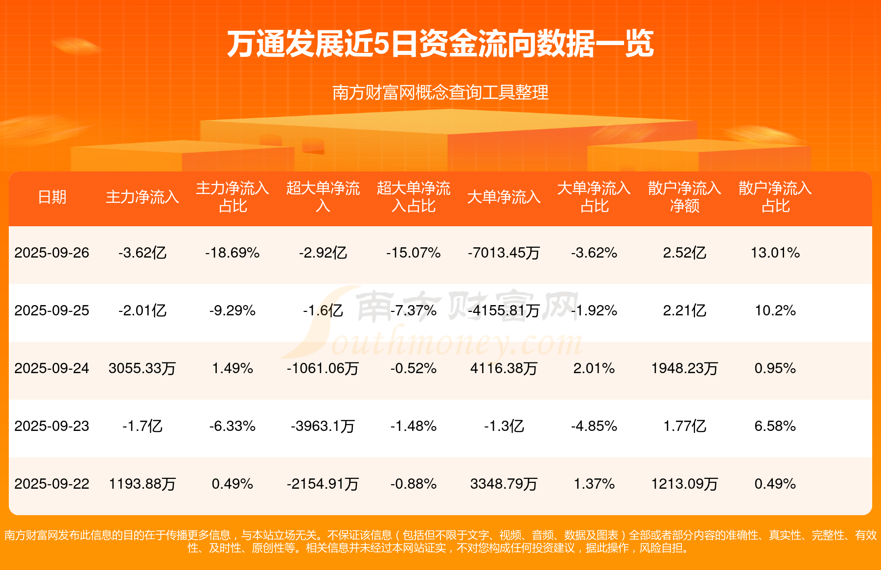 近5日資金流向一覽見下表: