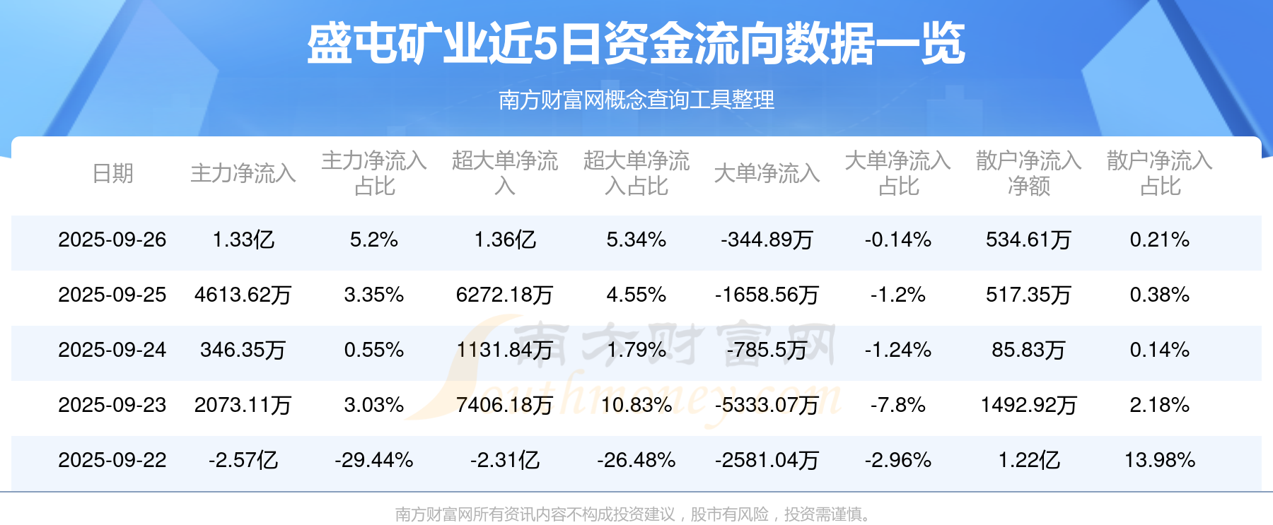 近5日資金流向一覽見下表: