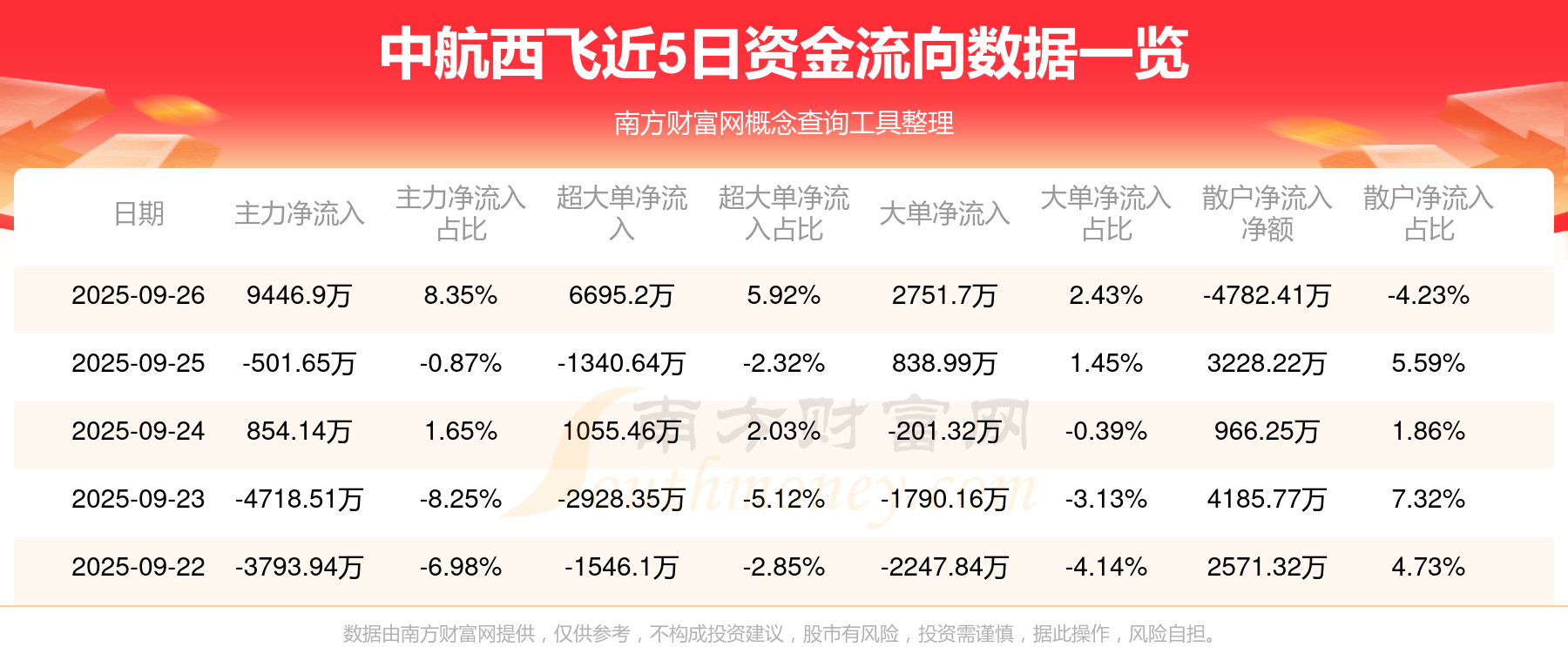 近5日資金流向一覽見下表: