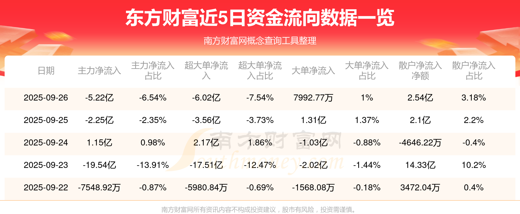 9月26日消息,東方財(cái)富主力凈流出5.22億元,超大單凈流出6.02億元,散戶凈流入2.54億元。